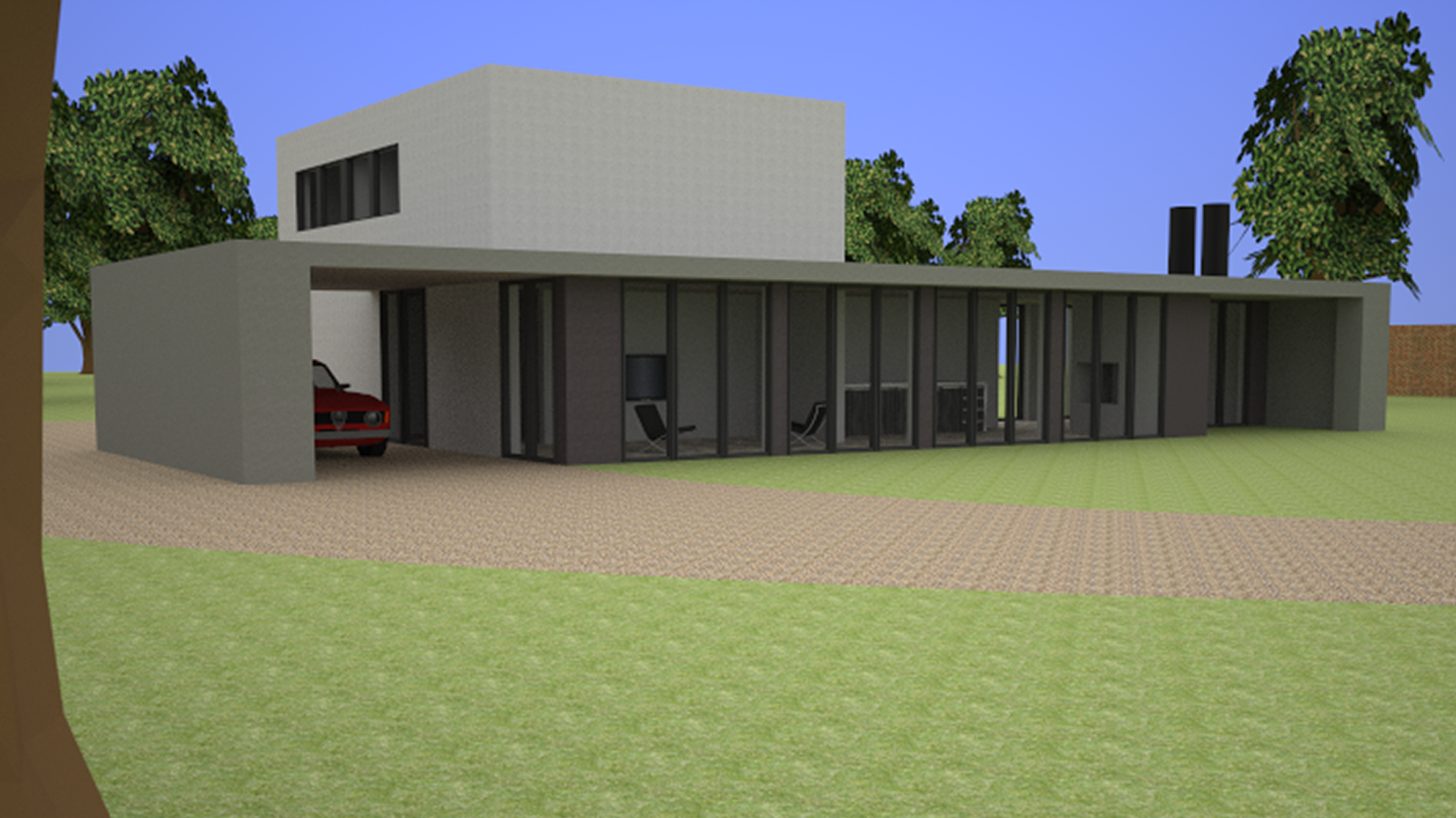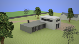 Arkenbout designed this airy & open villa in the woods of the Achterhoek, near Epse, the Netherlands. The dark concrete table gives the house the purpose of a home, solid and safe. The glass & aluminium underneath the table ensures the inhabitants stay connected with the earth surrounding them. The white cube almost literally takes a bite out of it. This way it puts the given security into perspective.